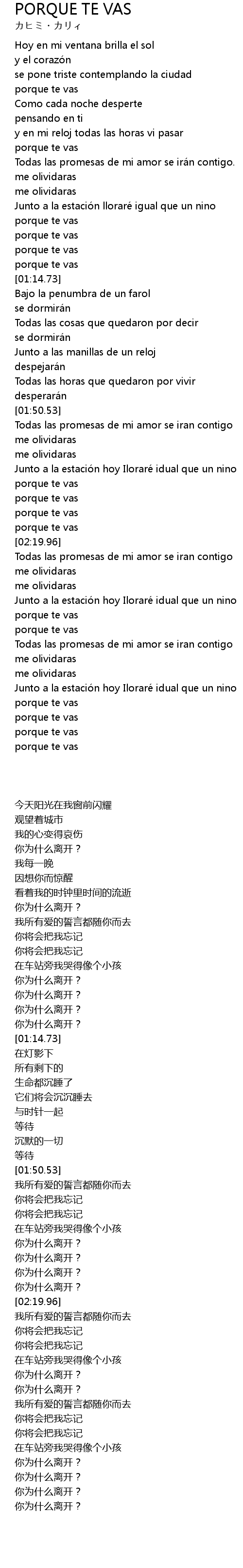 | [00:46.29] | Todas las promesas de mi amor se irá n contigo. |
