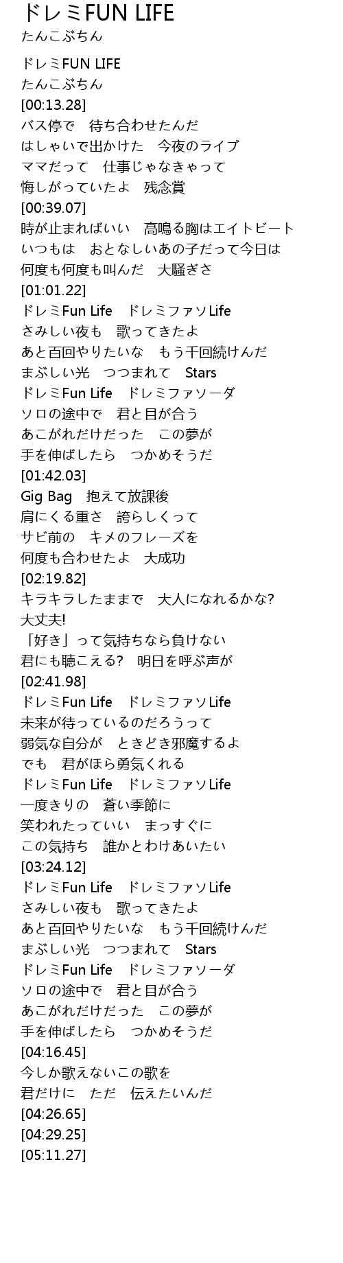 | [03:02.69] | ドレミFun Life ドレミファソLife |