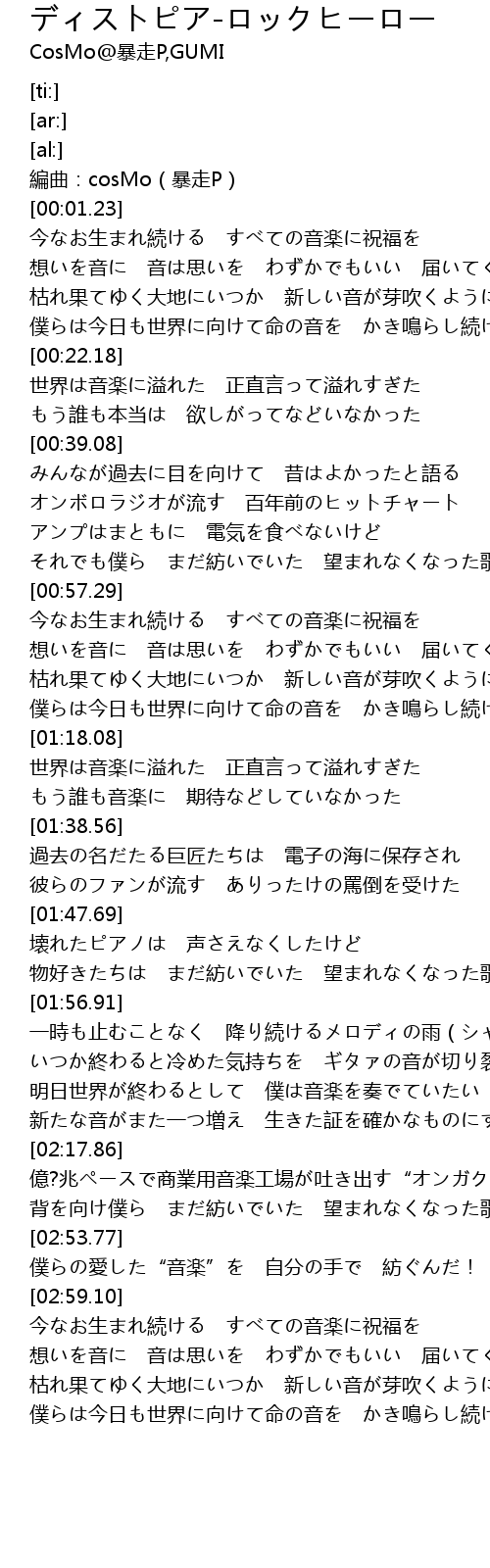 | [00:00.41] | 編曲:cosMo(暴走P) |