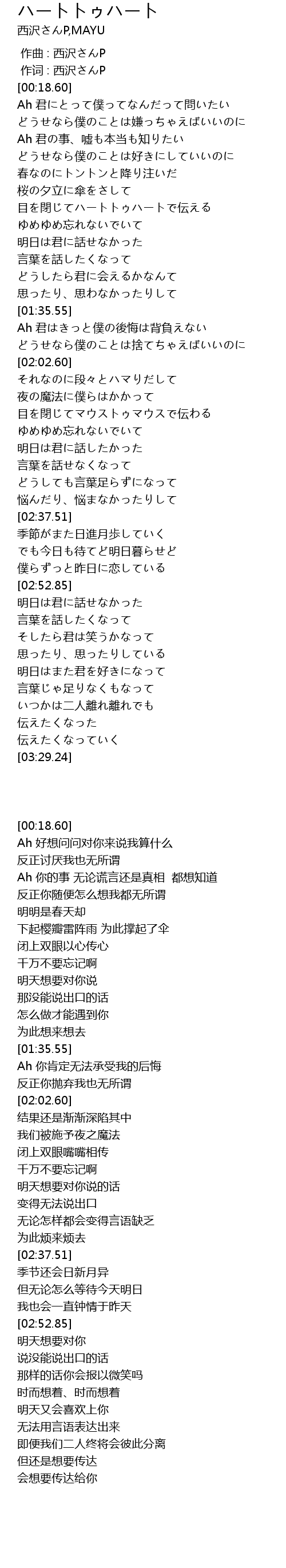| [00:01.00] | 作词 : 西沢さんP |
