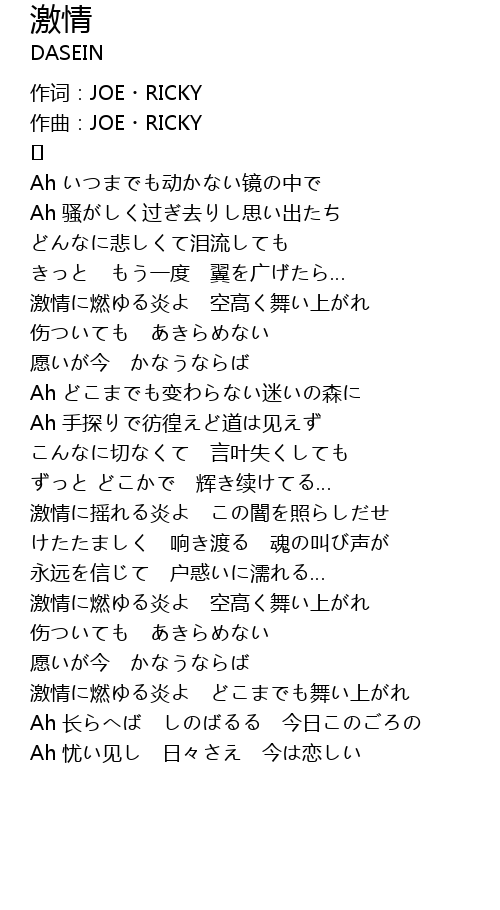 | 作词:JOE・RICKY | |
