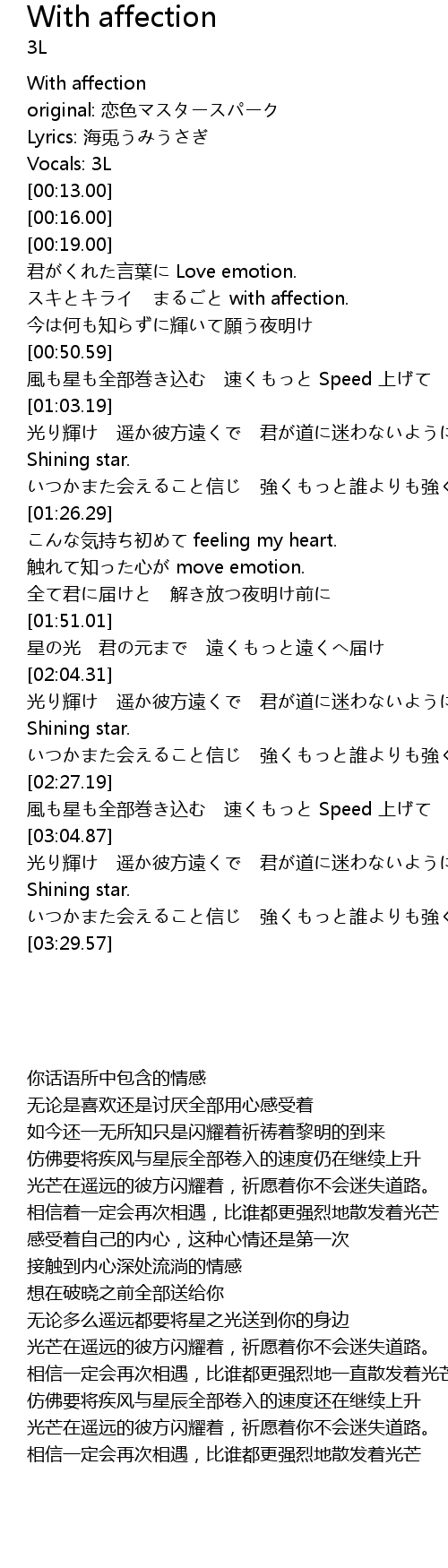 | 歌曲 | With affection |