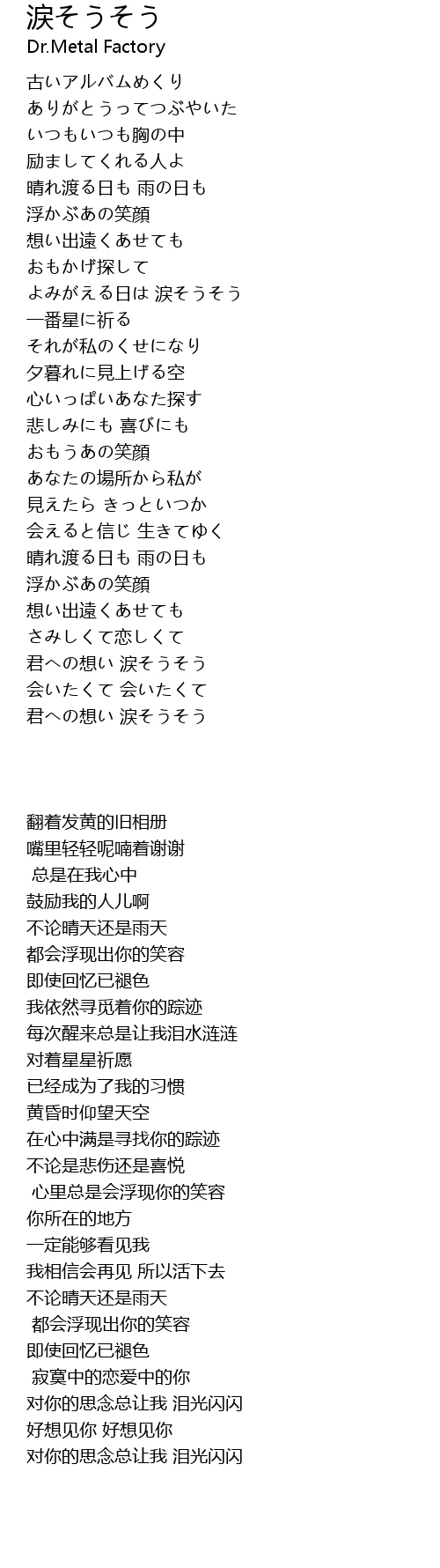 よみがえる日は 涙そうそう |