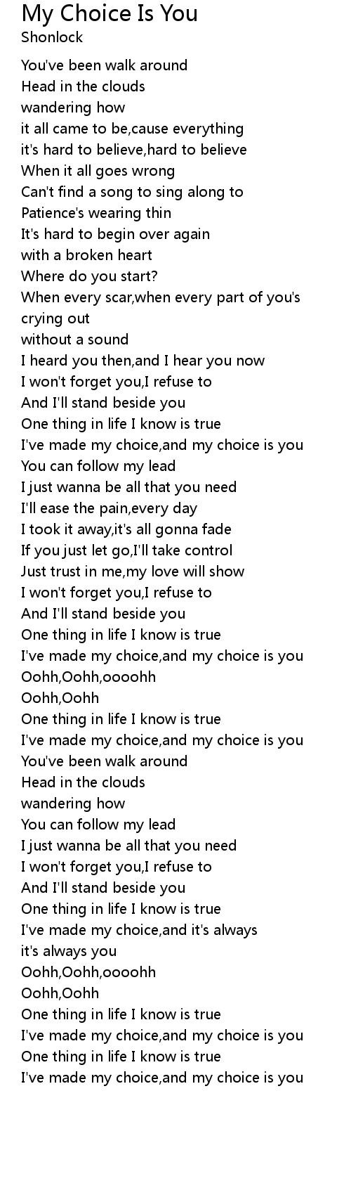I've made my choice,and my choice is you |