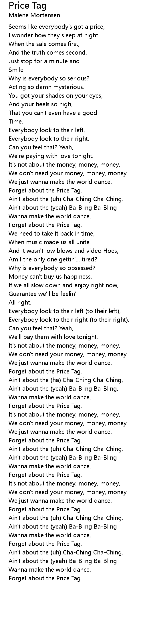 Ain't about the (uh) Cha-Ching Cha-Ching.