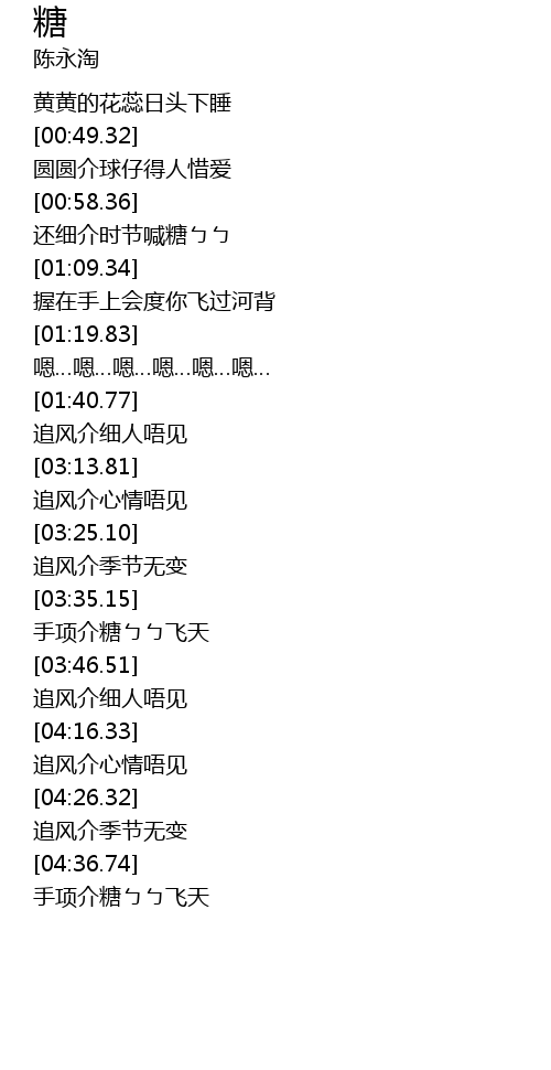 | [01:03.53] | 还细介时节喊糖ㄅㄅ |