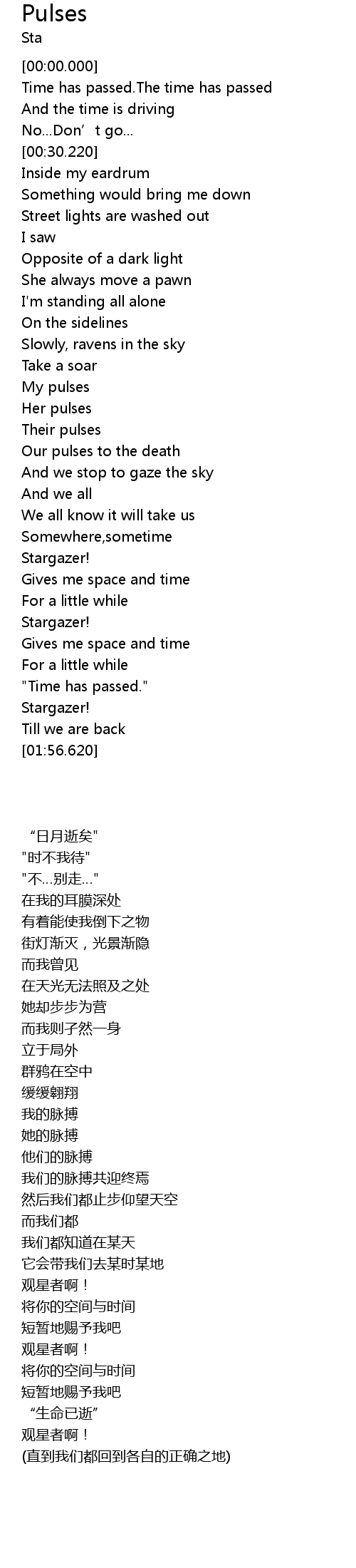 | [01:00.840] | Their pulses |