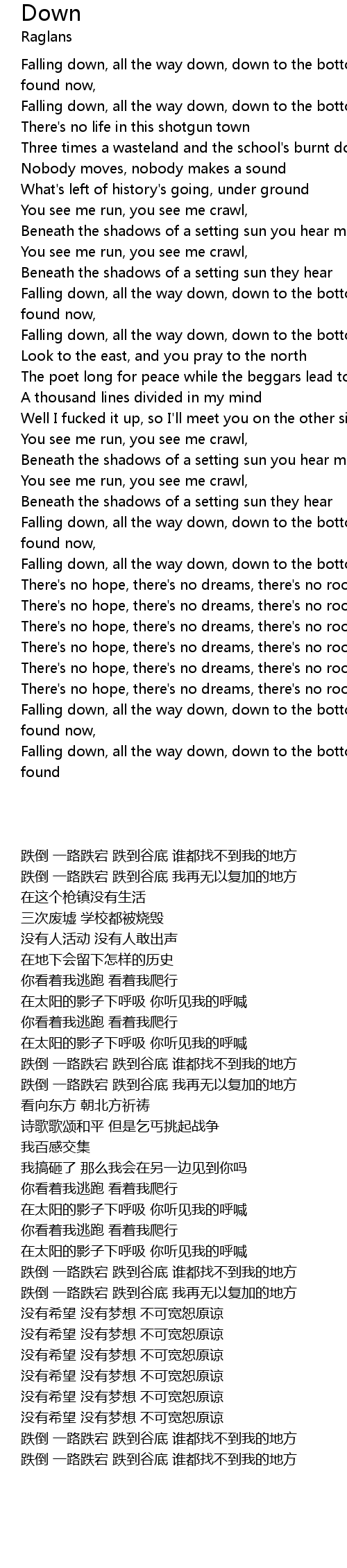 Falling down, all the way down, down to the bottom where I can't be... found |