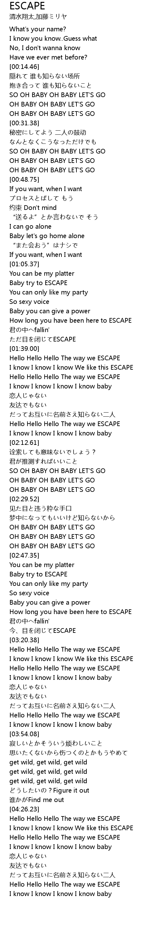 | [03:45.57] | Hello Hello Hello The way we ESCAPE |