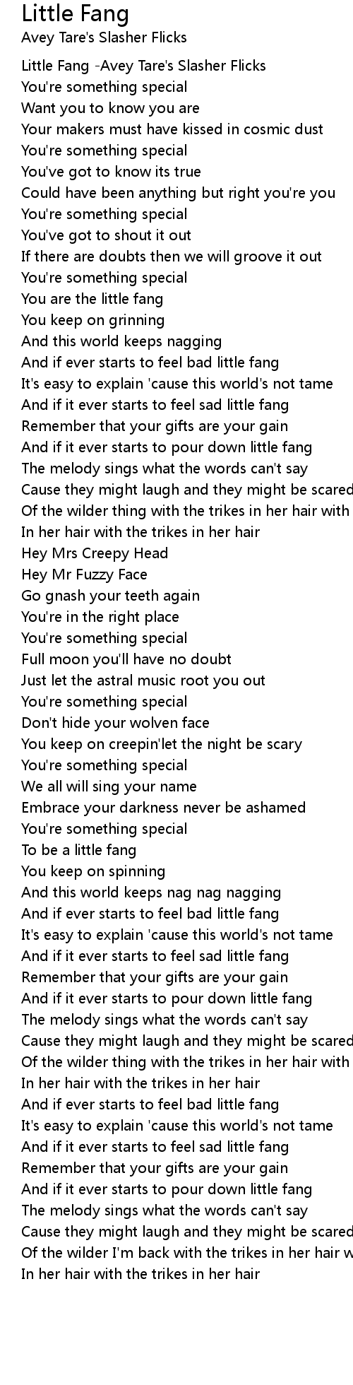 And if it ever starts to feel sad little fang |