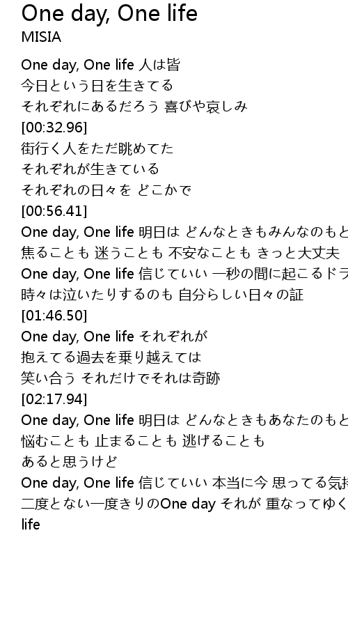 | [02:18.39] | One day, One life 明日は どんなときもあなたのもとへ |
