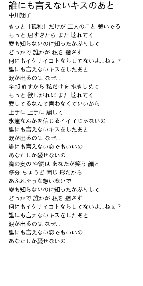 | きっと「孤独」だけが 二人のこと 繋いでる | |