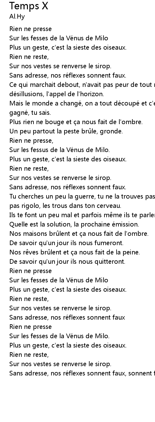 | [03:53.527] | Sans adresse, nos ré flexes sonnent faux, sonnent faux, sonnent faux |