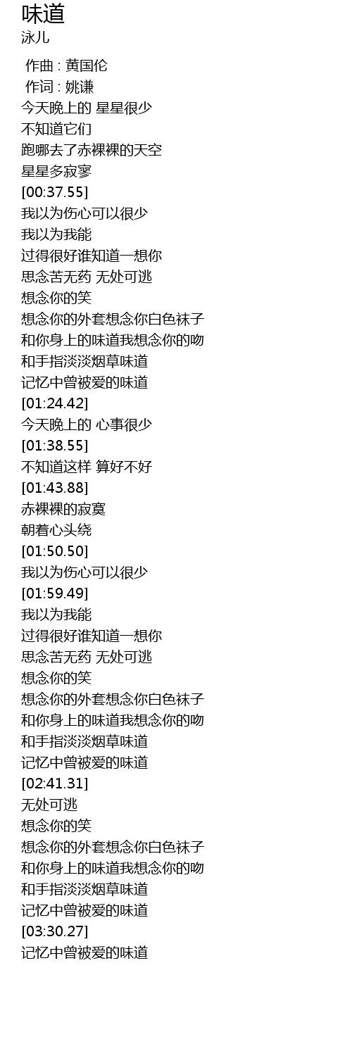| [03:20.82] | 和手指淡淡烟草味道 |