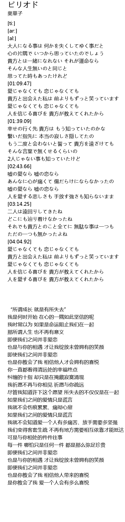| [04:18.39] | 愛じゃなくても 恋じゃなくても |