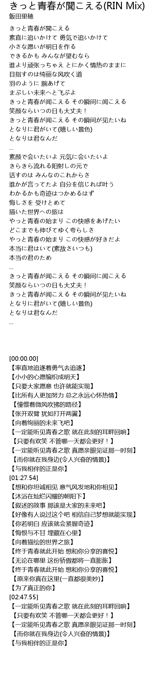 | [03:16.39] | きっと青春が闻こえる その瞬间に闻こえる |