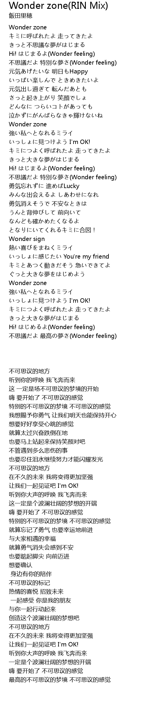 | [00:22.65] | 不思議だよ 特別な夢さ(Wonder feeling) |