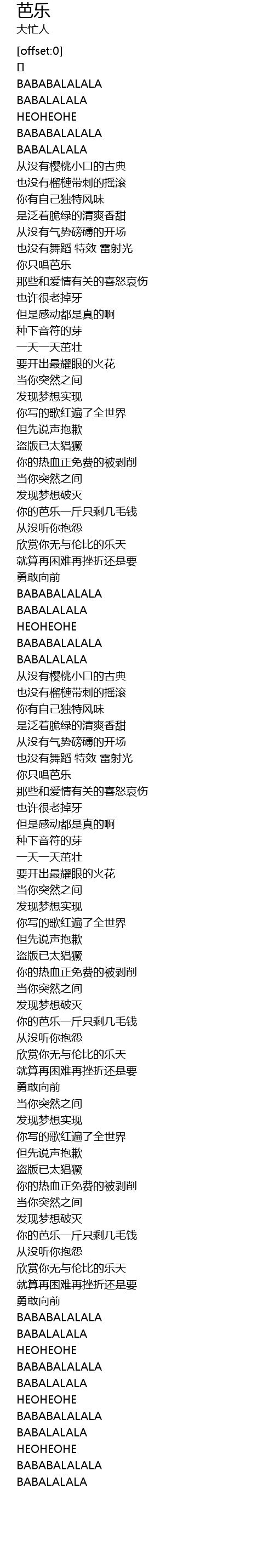 | [04:22.10] | BABABALALALA |