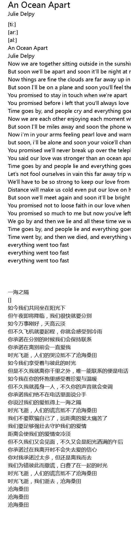 You promised to stay in touch when we're apart |