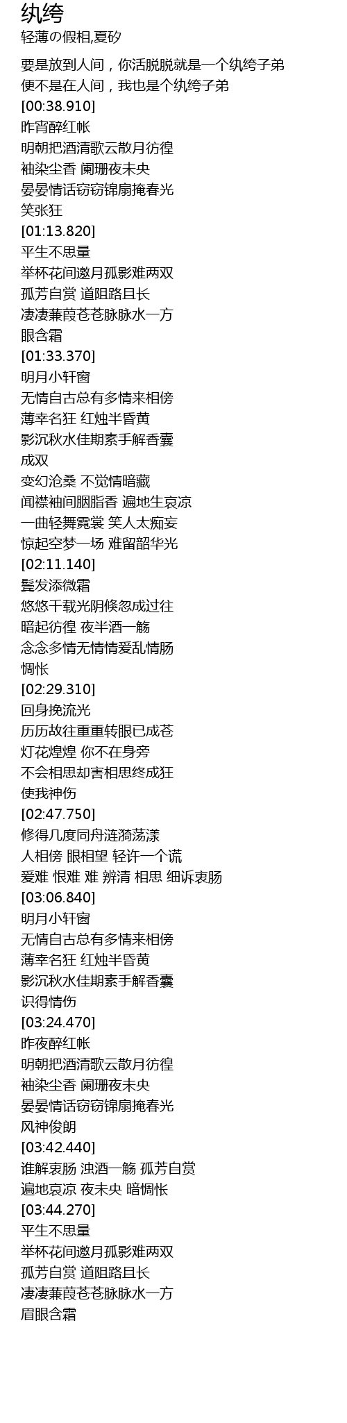 | [00:33.990] | 便不是在人间,我也是个纨绔子弟 |