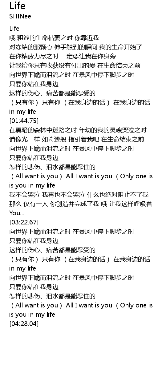 | [03:43.95] | (只有你) 只有你 (在我身边的话) 在我身边的话 in my life |