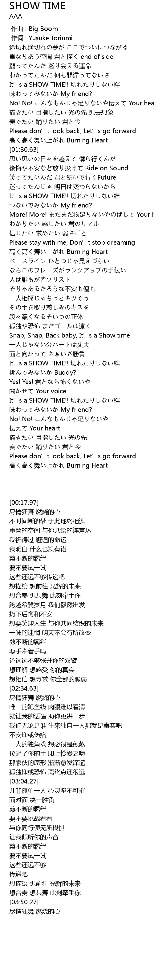 | [03:11.27] | It' s a SHOW TIME!! qie ban |