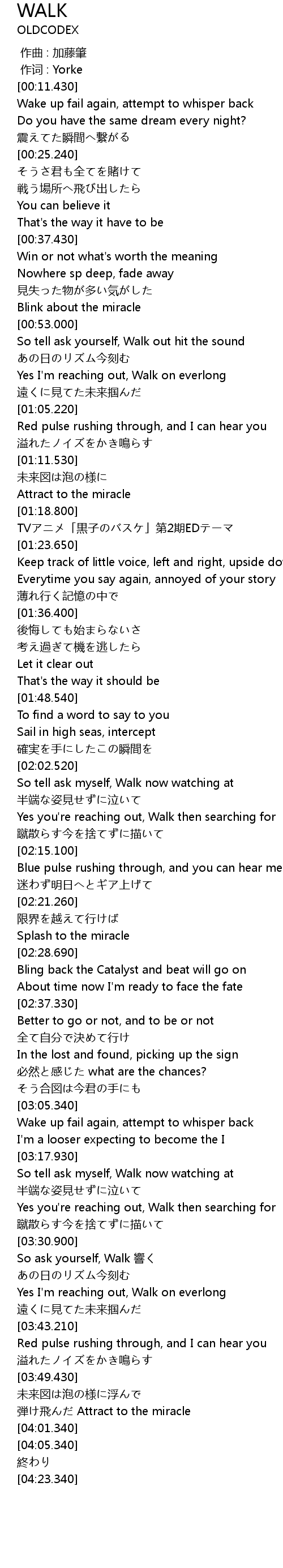 | [01:20.650] | TVアニメ「黒子のバスケ」第2期EDテーマ |