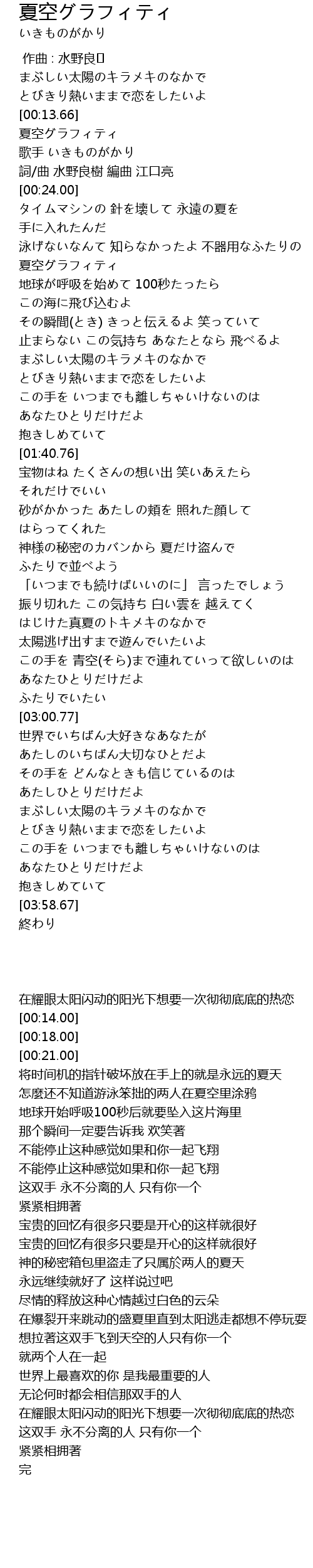| [00:36.78] | 怎麼还不知道游泳笨拙的两人在夏空里涂鸦 |