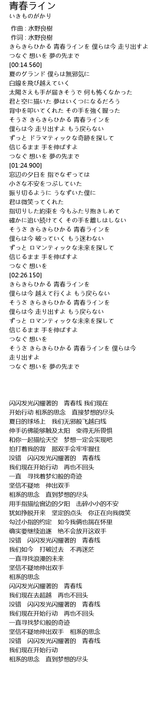 | [02:51.920] | 没错 闪闪发光闪耀著的 青春线 |