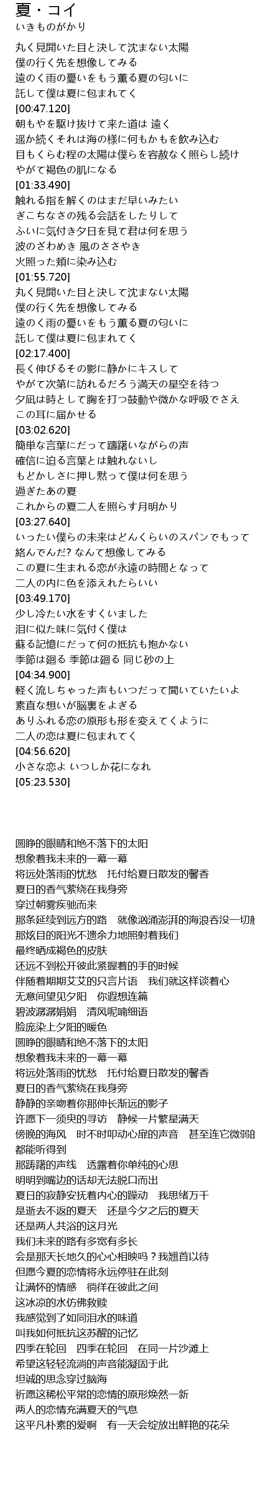 | [03:38.980] | この夏に生まれる恋が永遠の時間となって |