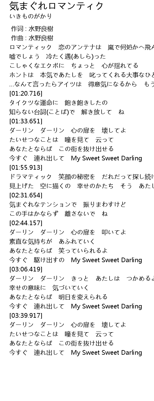 | [03:57.652] | 今すぐ 連れ出して My Sweet Sweet Darling |