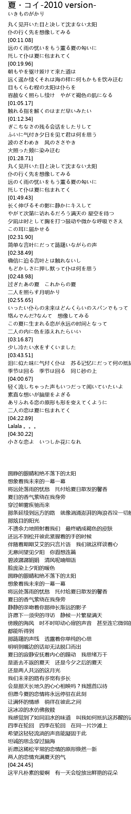 | [04:19.08] | 二人の恋は夏に包まれてく |
