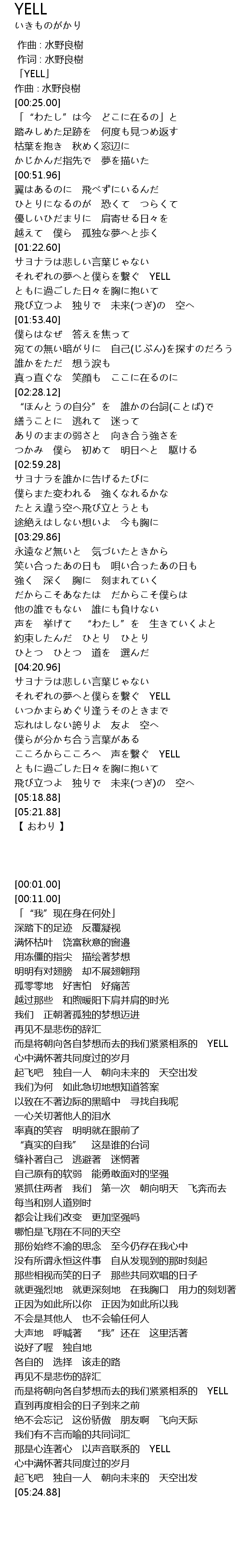 | [04:30.01] | それぞれの夢へと僕らを繋ぐ YELL |