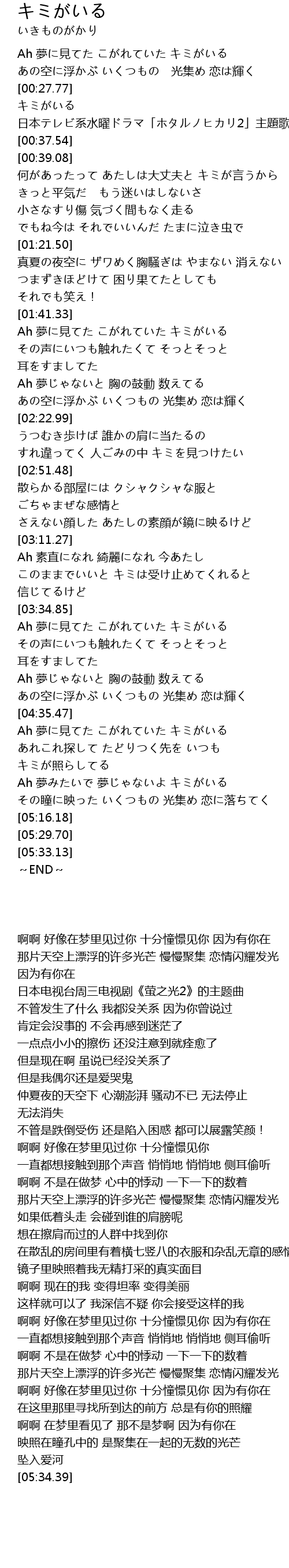 | 歌曲 | キミがいる |