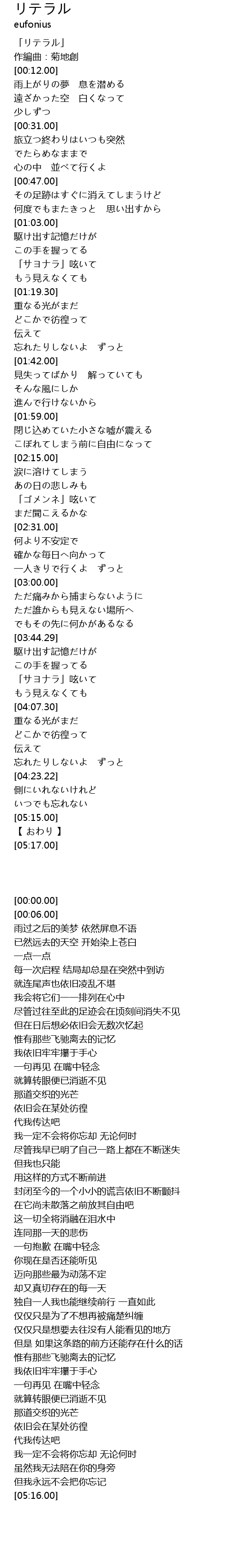 | [04:20.03] | 忘れたりしないよ ずっと |