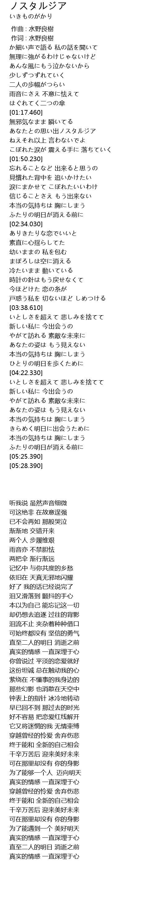 | [01:25.860] | あなたとの思い出ノスタルジア |