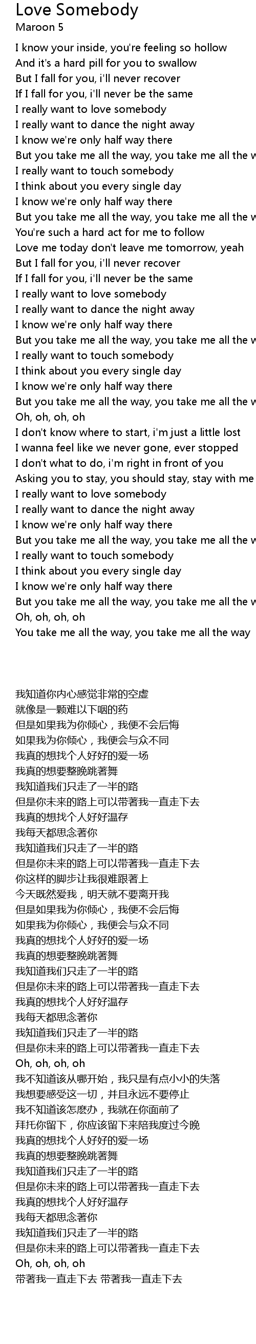 Love Somebody 歌词