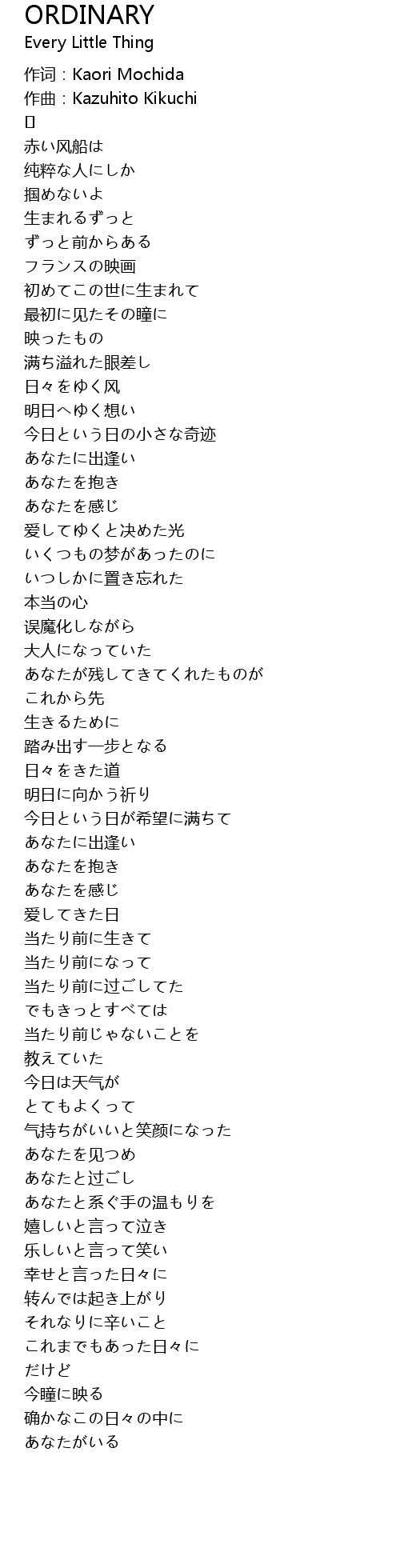 ORDINARY 歌词