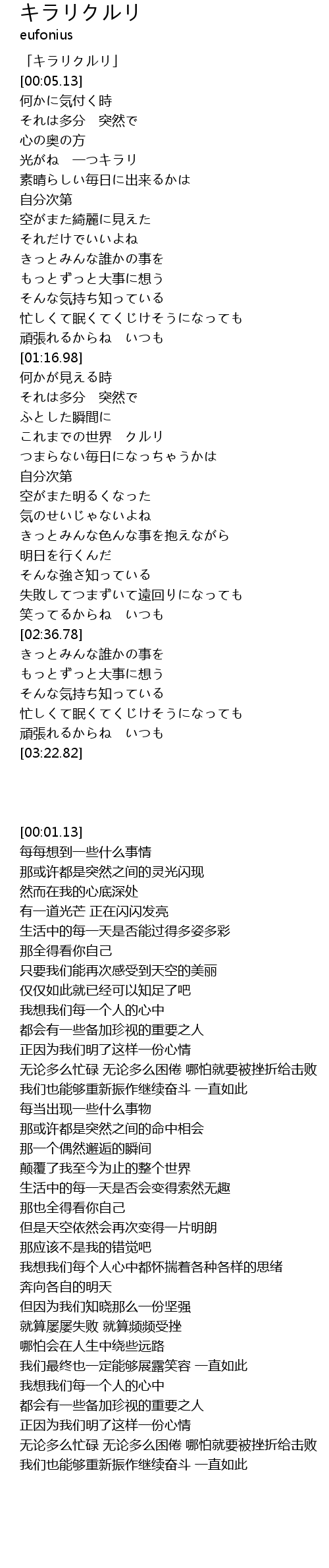 | [00:01.13] | 「キラリクルリ」 |
