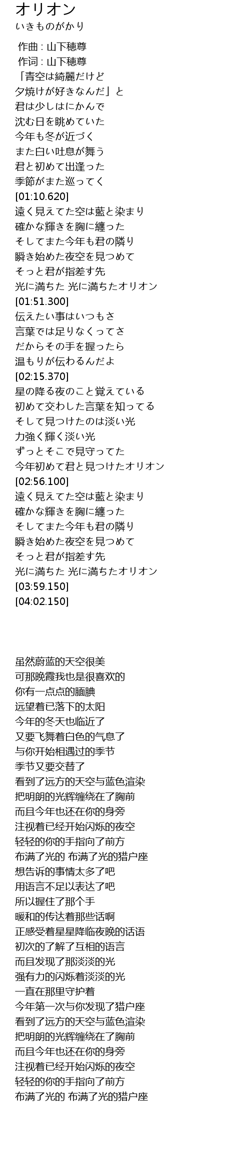 | [03:48.950] | 光に満ちた 光に満ちたオリオン |
