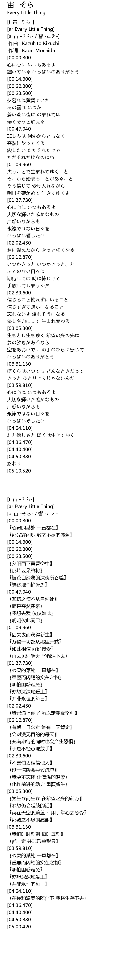 | [03:17.410] | 空をあおいで この手のひらに感じて |