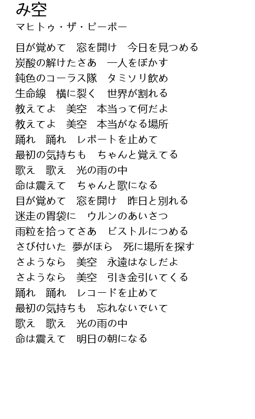 | [02:20.20] | さようなら 美空 永遠はなしだよ |