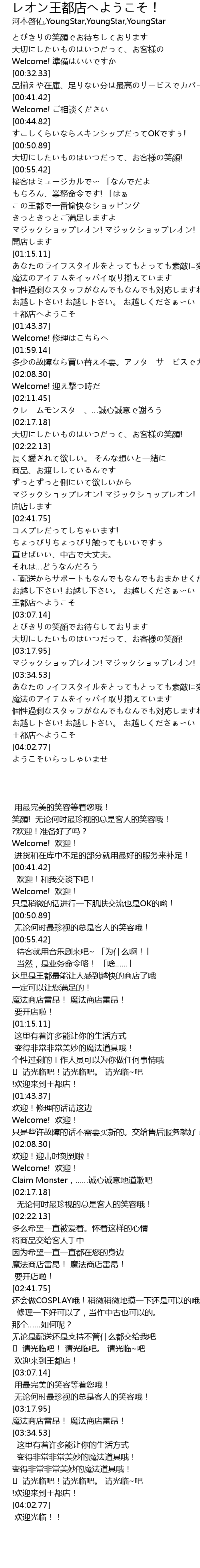 | [01:09.24] | マジックショップレオン! マジックショップレオン! |