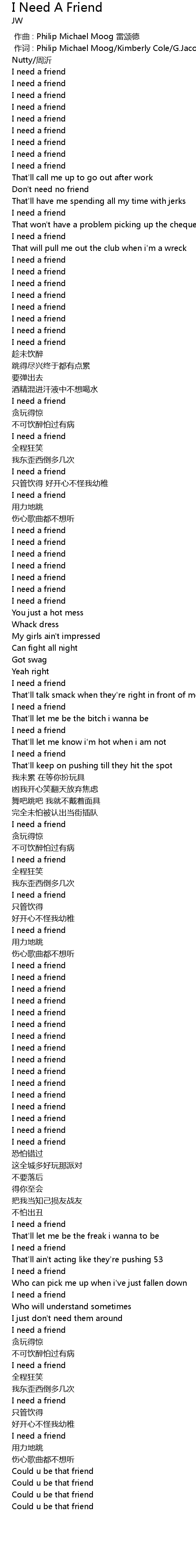 | [00:04.29] | I need a friend |