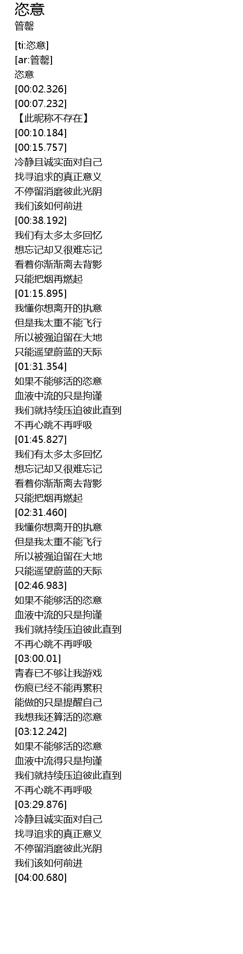 | [02:47.435] | 如果不能够活的恣意 |