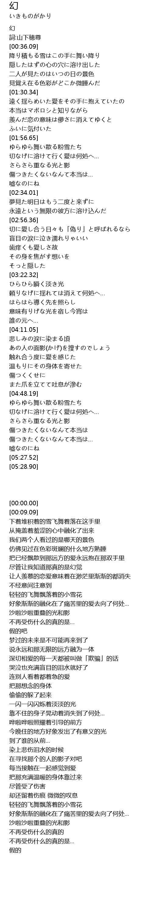 | [04:50.00] | ゆらゆら舞い散る粉雪たち |