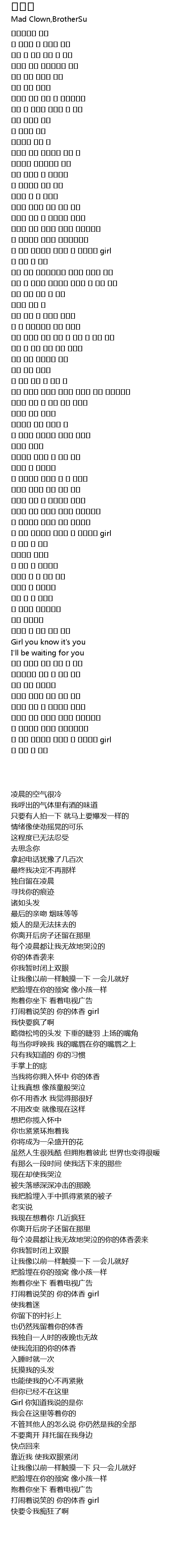 | [01:56.27] | 每个凌晨都让我无故地哭泣的你的体香袭来 |