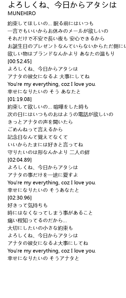| [00:57.53] | アナタの彼女になるよ 大事にしてね |