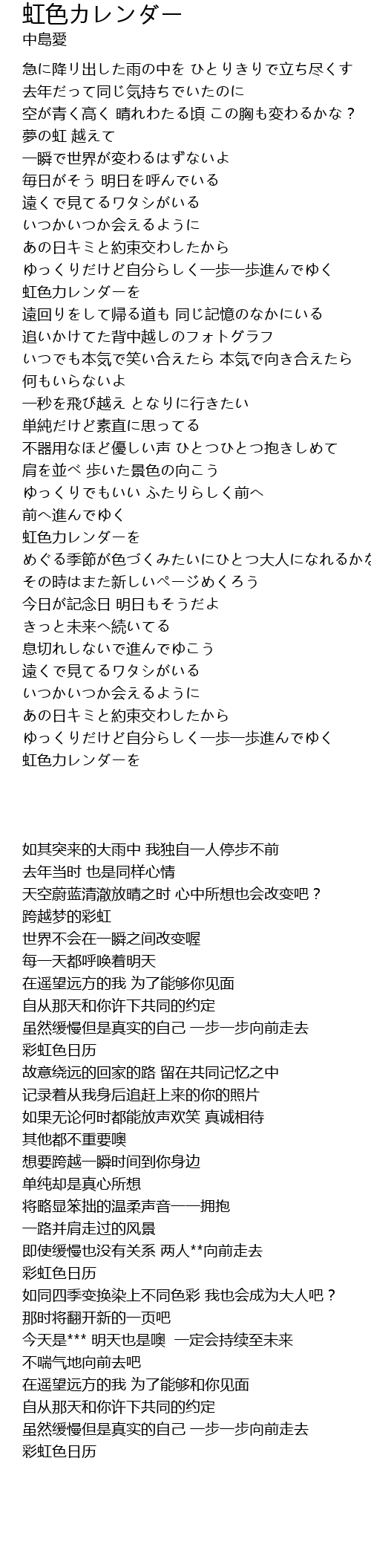 | [00:35.56] | 去年だって同じ気持ちでいたのに |