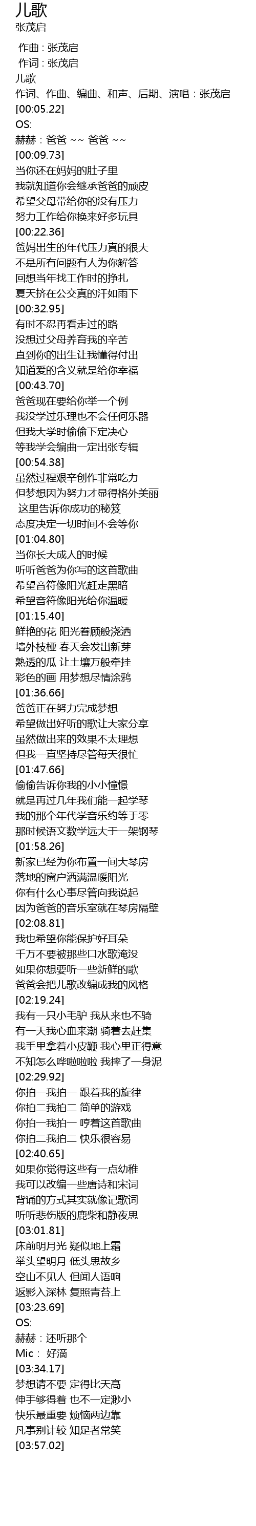 | [00:03.06] | 作词、作曲、编曲、和声、后期、演唱:张茂启 |